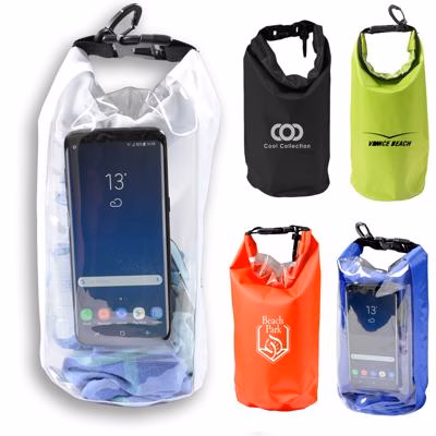 This water-resistant 2.5L dry bag is made from durable 210D PVC-coated tarpaulin, keeping your items safe and dry during outdoor activities like camping or wet-weather trips. The roll-down closure creates a watertight seal for extra protection. Each bag features a clear window with an internal smartphone pocket (103mm w x 153mm h), so you can store and use your smartphone while keeping it dry.Please note, that imprint is available on one side only due to the seam on the reverse.Please note a standard digital transfer CMYK cannot be exactly PMS matched. To convert artwork colours from CMYK to PMS is $55.00 net per colour.For digital transfer printing, please ensure art and colours are at full opacity.