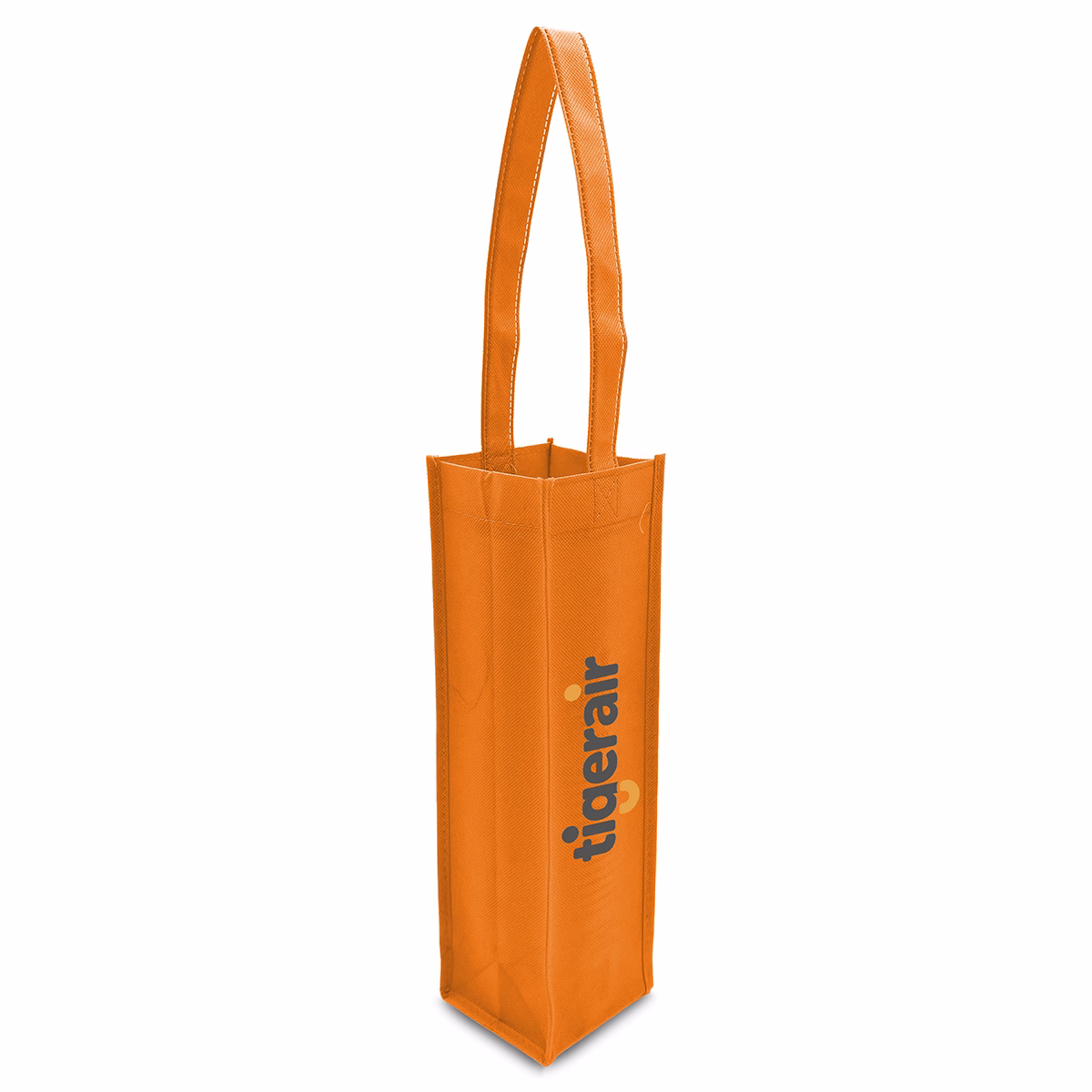 Raise your glasses! This non-woven wine tote accommodates a single wine bottle, cooking sauces & gourmet oil bottles. Washable and recyclable, this durable wine tote is an excellent giveaway for wineries, liquor stores and restaurants. Folds flat when not in use, making it the ideal space saving solution. Perfect for company logos and promotional messages. Contact us to know more!We also provide branded bottle openers to put inside the bag in case one is ever forgotten!.Please note a standard digital transfer CMYK cannot be exactly PMS matched. To convert artwork colours from CMYK to PMS is $55.00 net per colour.For digital transfer printing, please ensure art and colours are at full opacity.