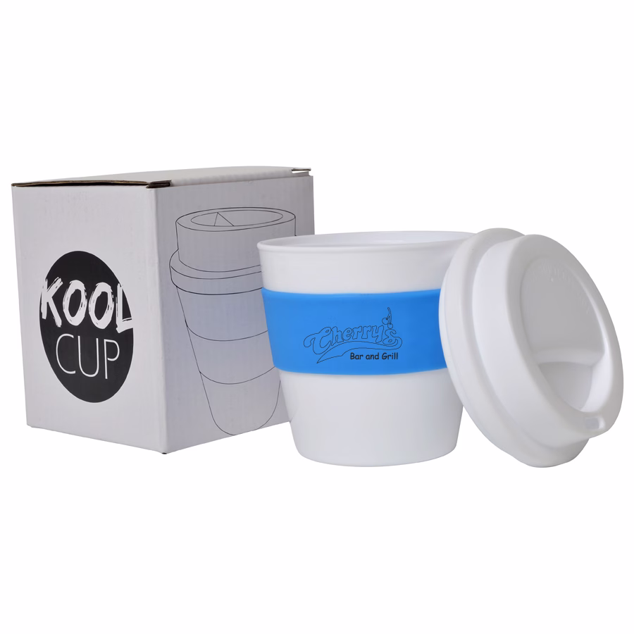 The Kool Cup is a straightforward solution for your beverage needs. Made from food-grade polypropylene, it features a screw-on lid and a silicone heat band to protect your hands from hot liquids. With a 235ml capacity, it's compact and convenient for everyday use.
