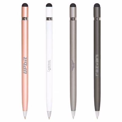 Twist-action pen featuring a sleek aluminium barrel with clean, modern lines. Designed for versatility, it includes a stylus tip for use with tablets and smartphones. Equipped with a high-quality black German ink refill and a TC ballpoint for a smooth writing experience. Each Infinity Pen is presented in a slide-out white box for a refined touch.