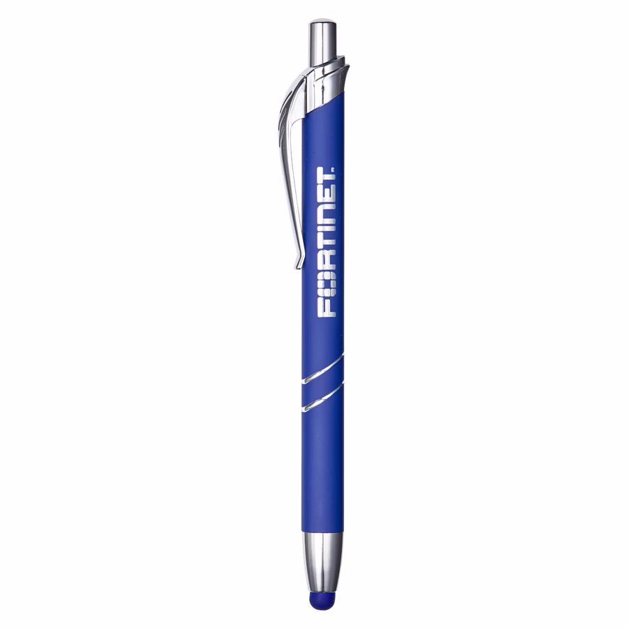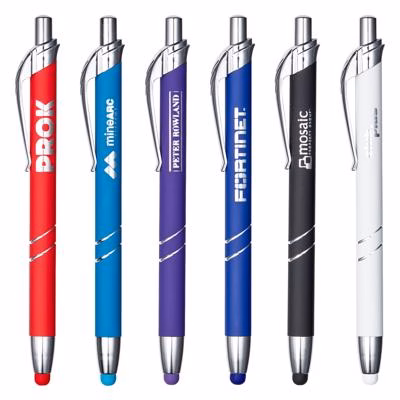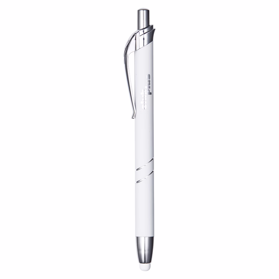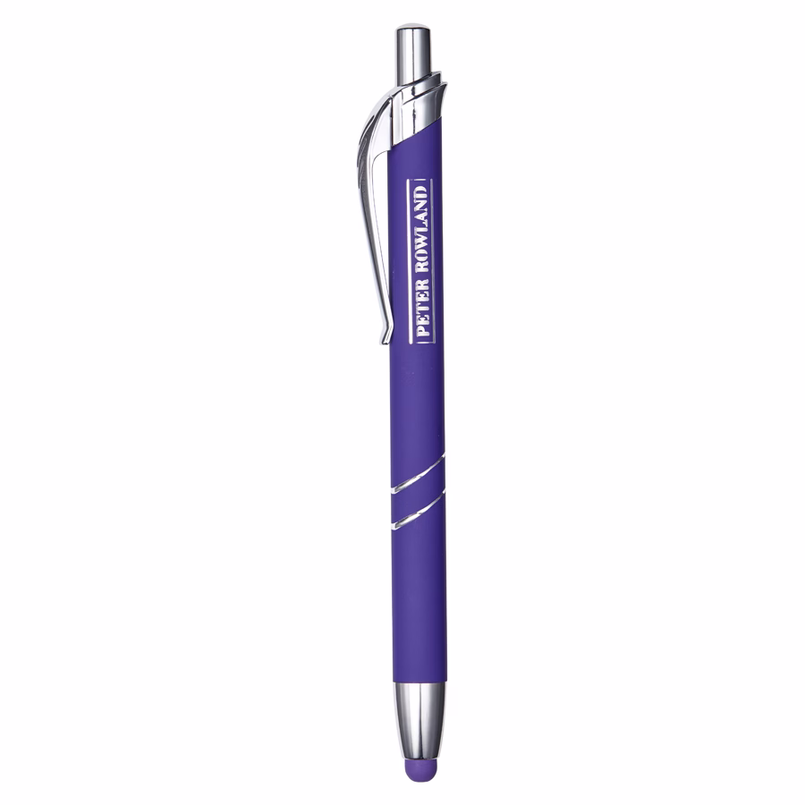 This click-action metal pen with a unique rubberised finish offers a sleek, comfortable grip and smooth black ink. It also features a matching stylus tip for seamless device use. Engraving reveals a striking matte finish, making it both functional and eye-catchingProduct Dimensions: 138mm longWriting distance: 500M