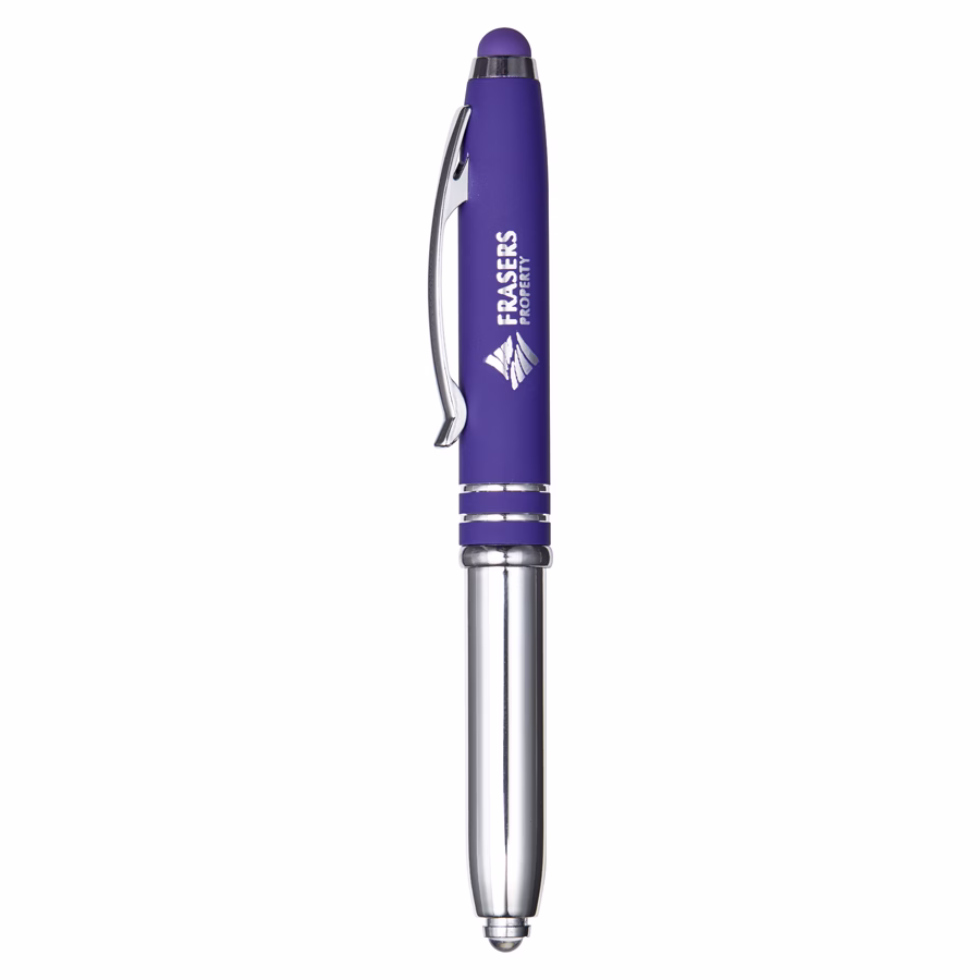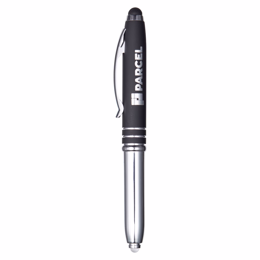 This reversible pen light is a clever multi-tasker. The base detaches and flips to reveal either a push-on LED light or a ballpoint pen, giving you two tools in one. The clip area features a smooth rubberised finish and a matching stylus tip for touchscreen use. Supplied with black ink and a built-in isolator to prevent the light from turning on during shipping. Each pen is engraved to reveal a sleek matte finish for a polished, professional look.