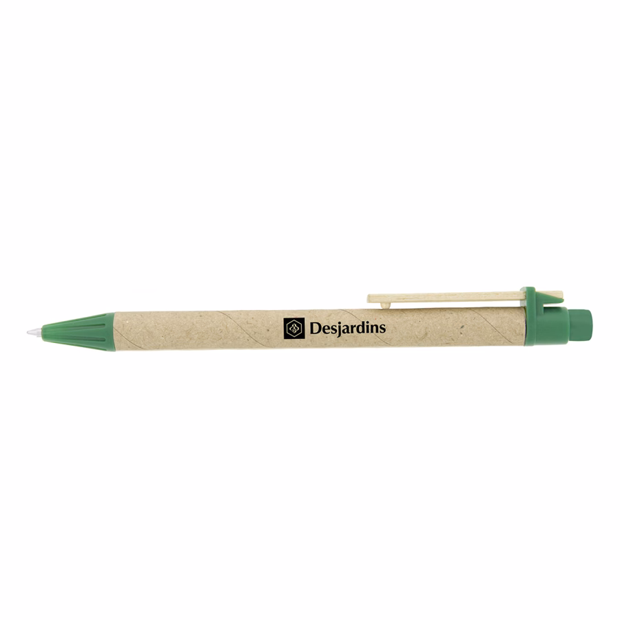 This click-action ballpoint pen is made from recycled paper, and features a biodegradable paper barrel and a wooden clip for a natural, eco-friendly touch. A great choice for those looking to reduce their environmental impact while still enjoying a reliable writing instrument.
