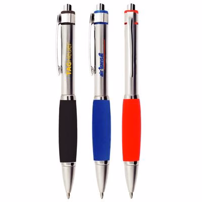 The brass click-action ballpoint pen offers a sleek and reliable writing experience. Featuring black ink, a metal pocket clip, and a soft grip for comfort, it's designed for smooth writing every time.