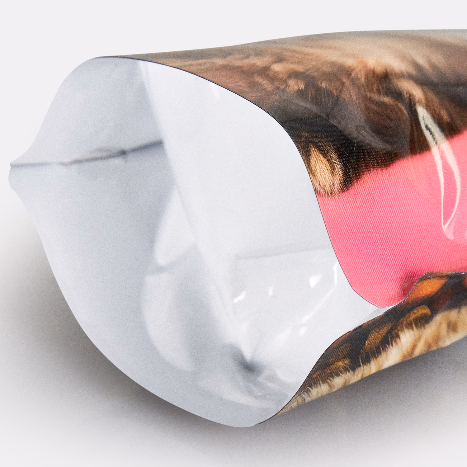 Foil stand up pouch with resealable zip lock closure. Available in either a matte or gloss finish and can include a transparent window area so goods inside can be seen. Full colour branding available for maximum brand impact. Ideal for dry goods and other items. A production lead time of 20 working days applies to this product.