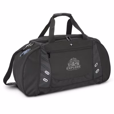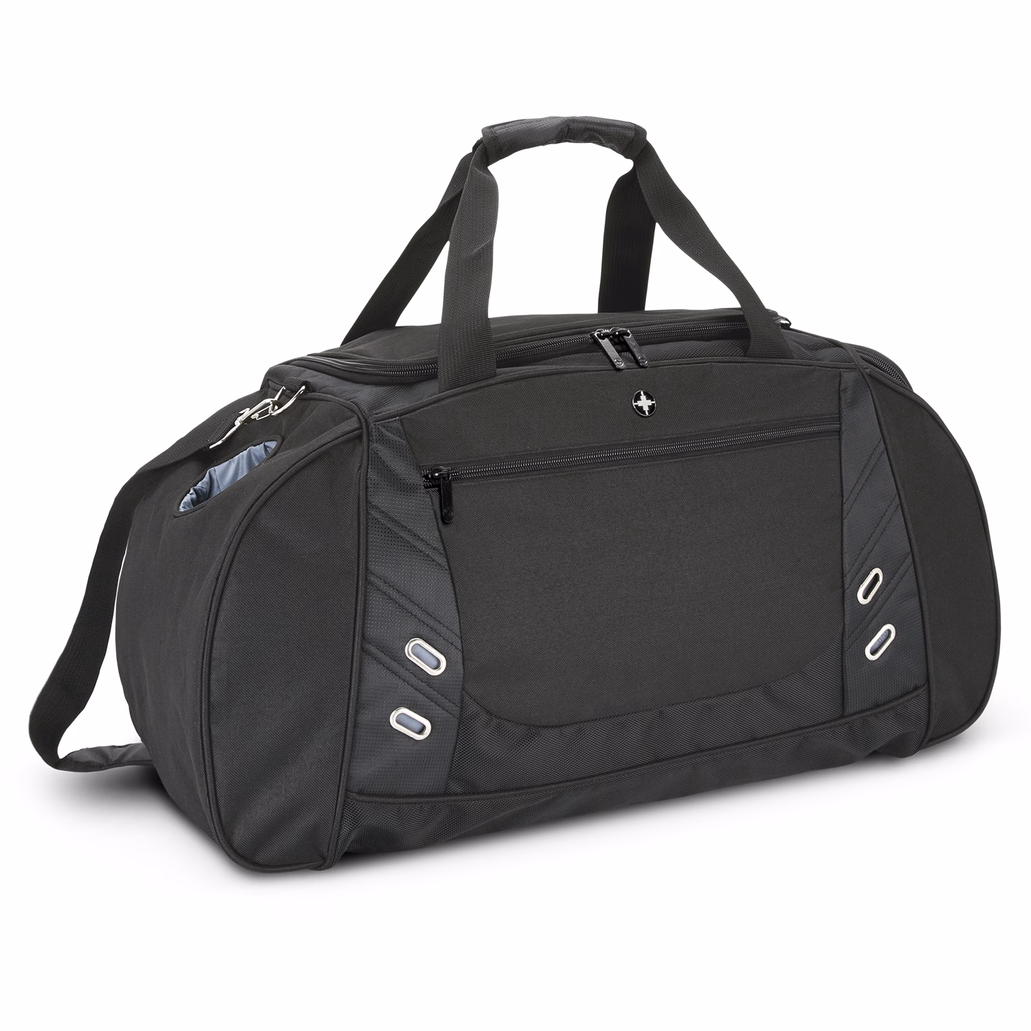 Swiss Peak have combined smart design with the needs of a busy lifestyle to create this versatile duffle bag, ideal for long weekends or as a sports or gym bag. Manufactured from durable 600D and 1680D polyester it features a spacious main compartment with a U-shaped zip opening for easy access, along with a side-entry shoe compartment that includes an air vent to keep things fresh. There's also a unique water bottle holder and a zippered side pocket for smaller essentials. An adjustable shoulder strap adds comfort and versatility on the go.