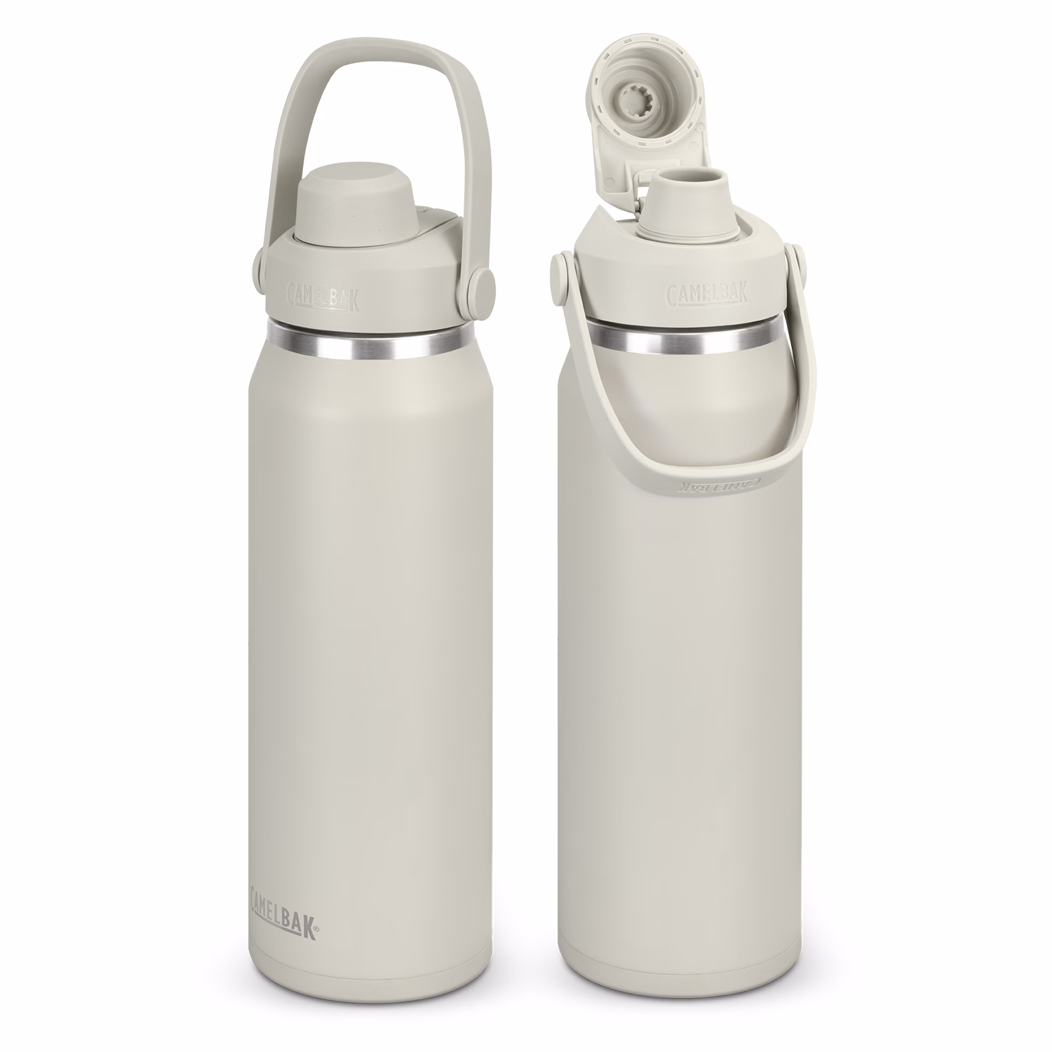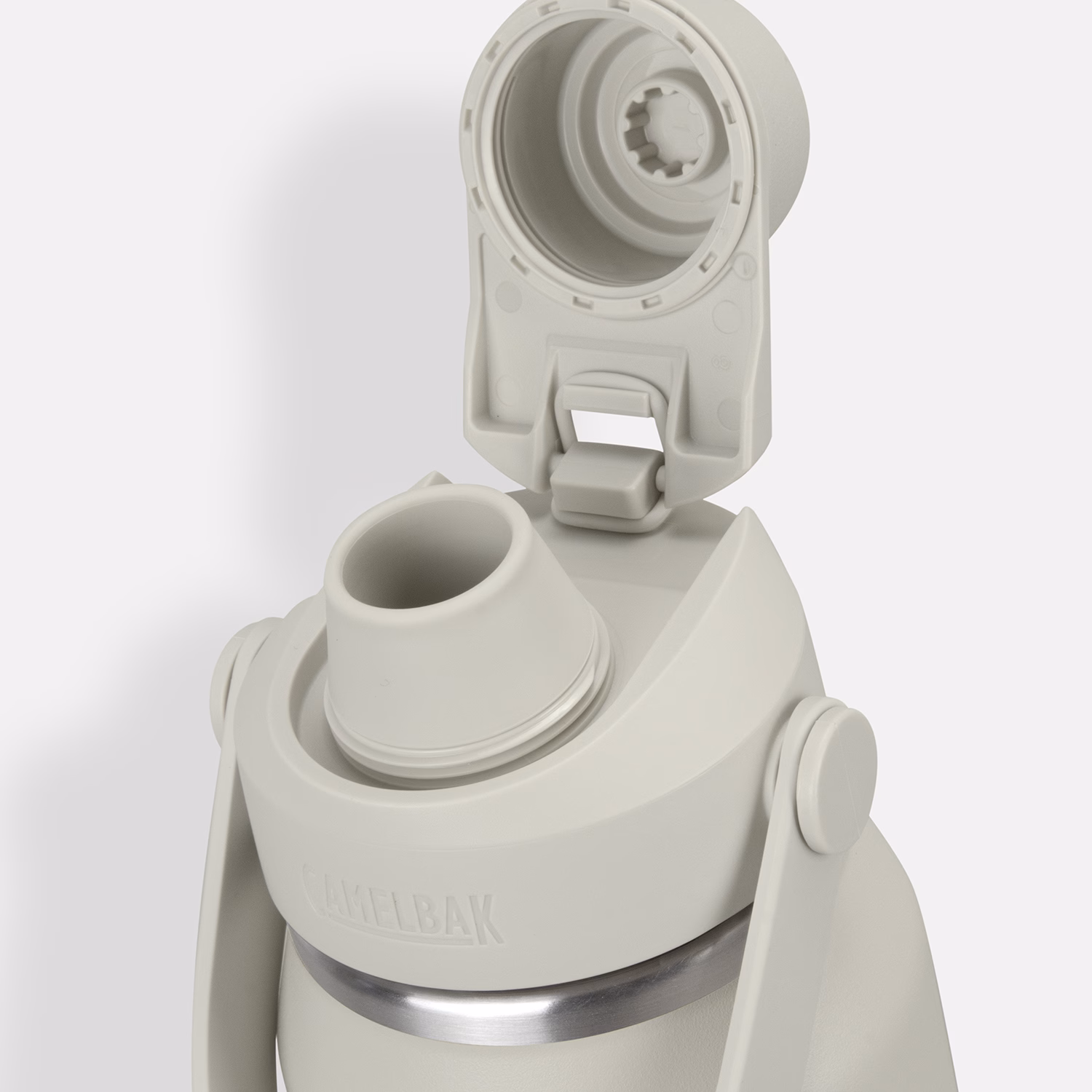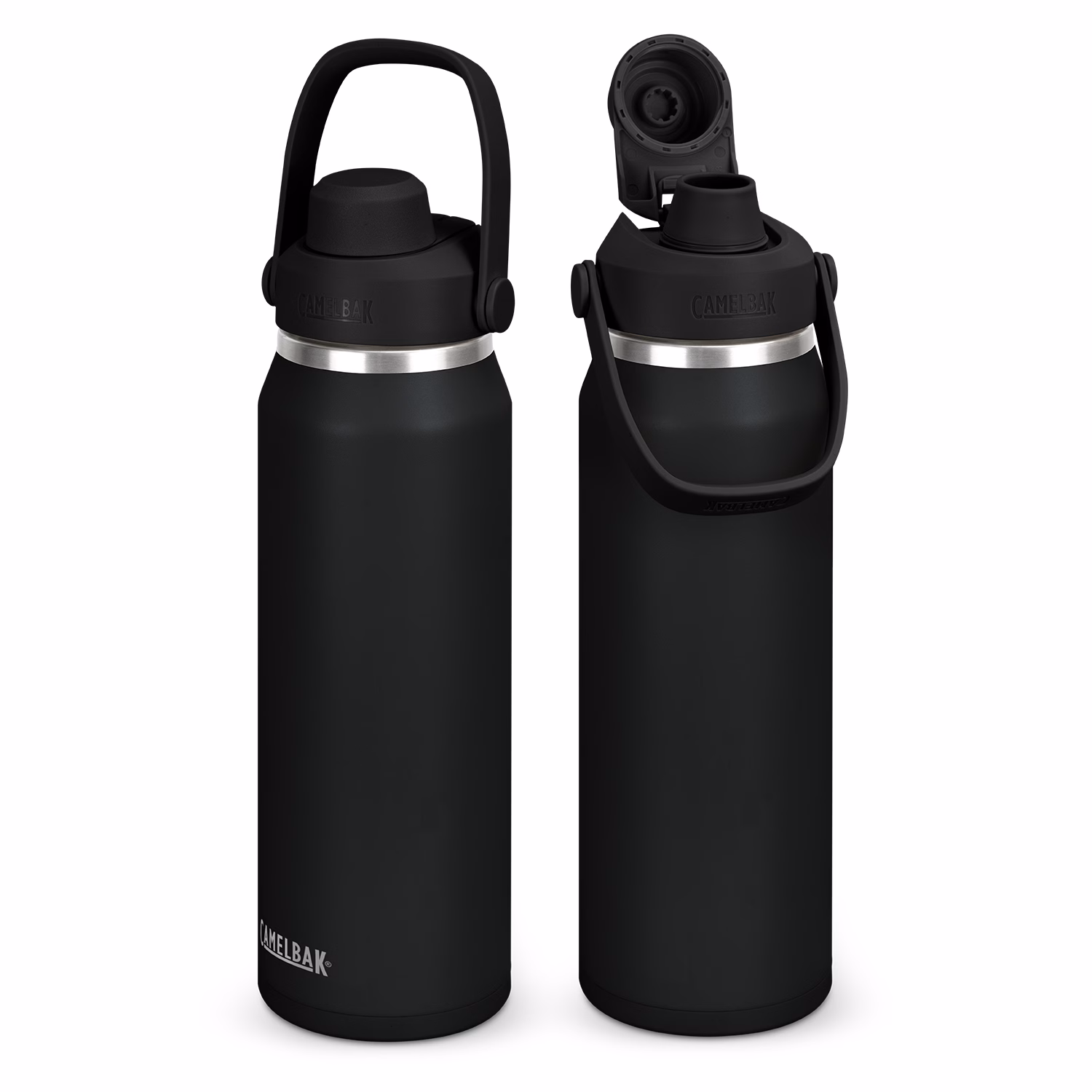 Don't just sip, chug. The 1L Thrive Chug Vacuum Bottle is built to keep you hydrated on even the harshest days. Manufactured from stainless steel, its double wall vacuum insulation keeps your drinks the perfect temperature. The leak-proof screw lid protects a wide spout silicone chug cap. When opened a spring-loaded mechanism smoothly flips the lid back and holds it in place while you drink. The large soft silicone carry handle provides a comfortable grip, while the non-slip base keeps the bottle steady. BPA-, BPS- and BPF-free and easy to clean, CamelBak products are backed by the Got Your Bak lifetime guarantee.