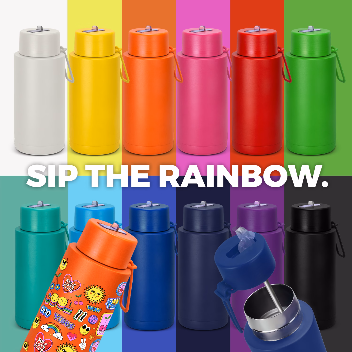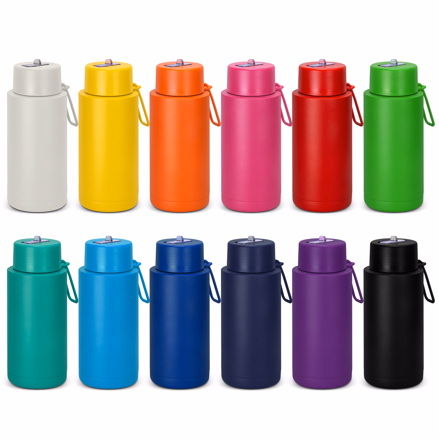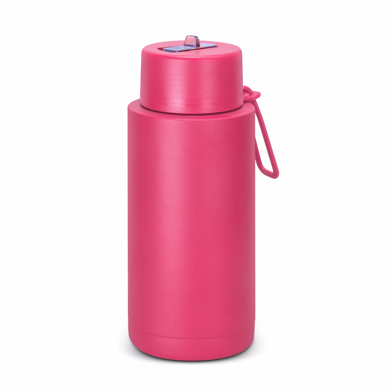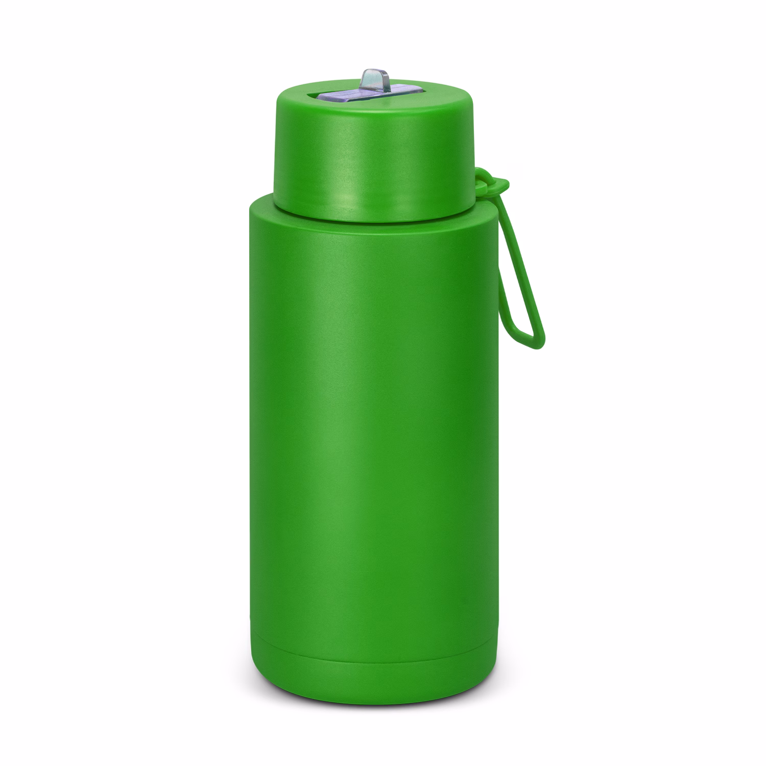 Stay hydrated on the go with the 1L double wall stainless steel Aura Vacuum Bottle. Its generous capacity minimizes the need for constant fill ups and the lightweight design keeps it practical for everyday use. It features a flip-valve sipper that conveniently folds into the lid, and a comfortable silicone carry-loop strap. The unique stainless steel inner straw is functional with the added benefit of reducing the use of plastic components. With a matte powder coated finish and a stunning range of vibrant colours, the Aura bottle is your perfect companion for work, home, or the gym.