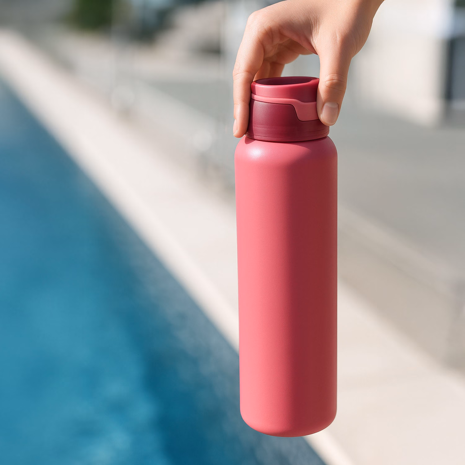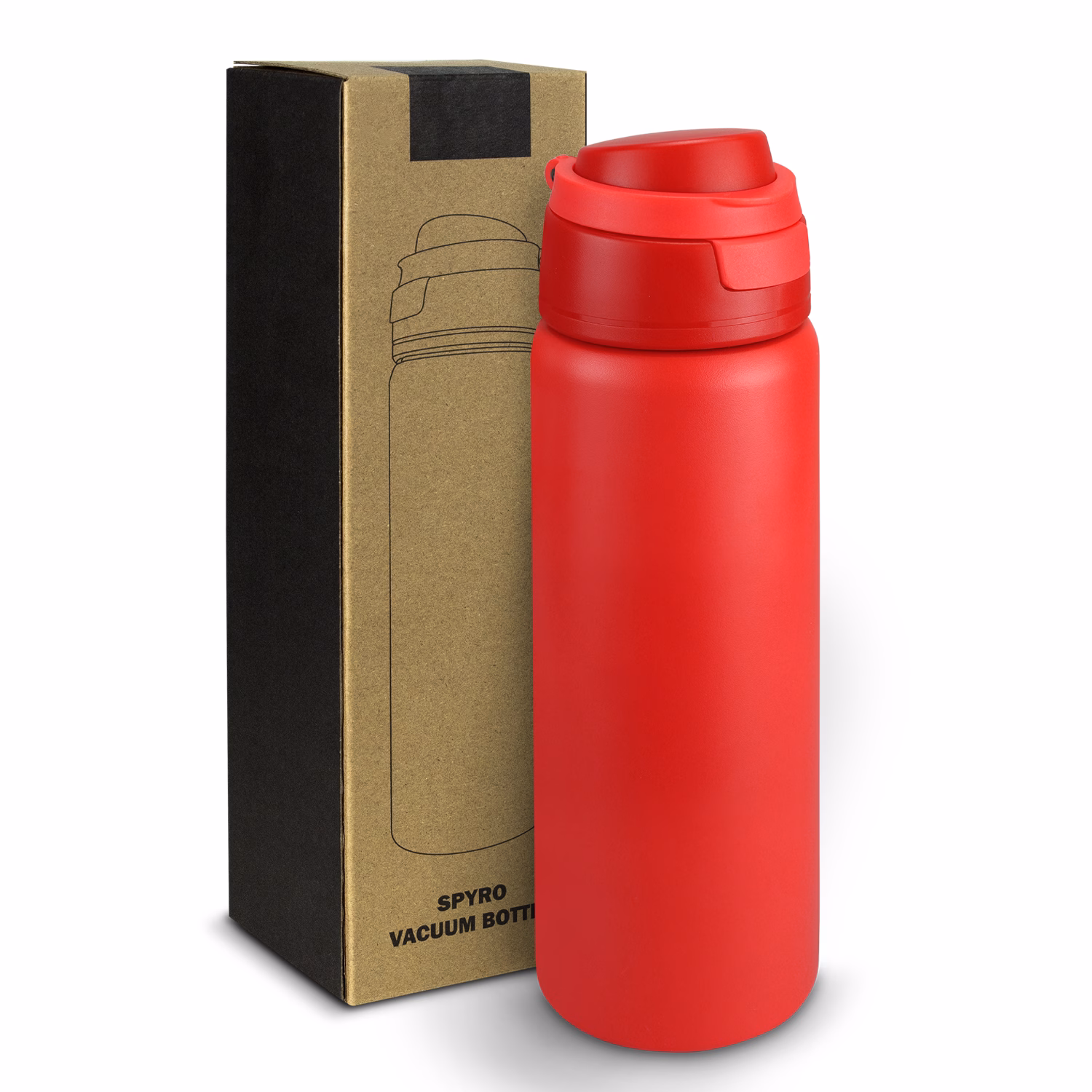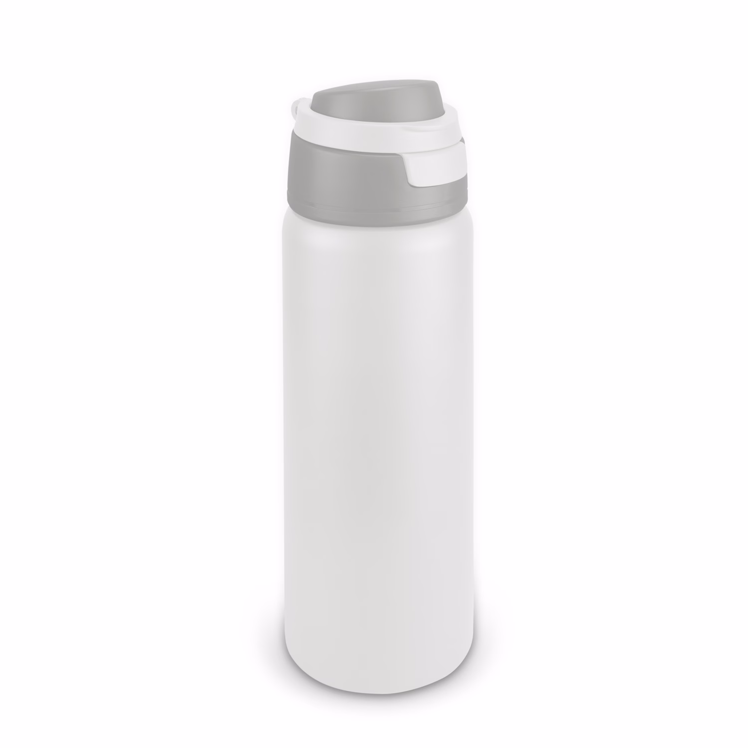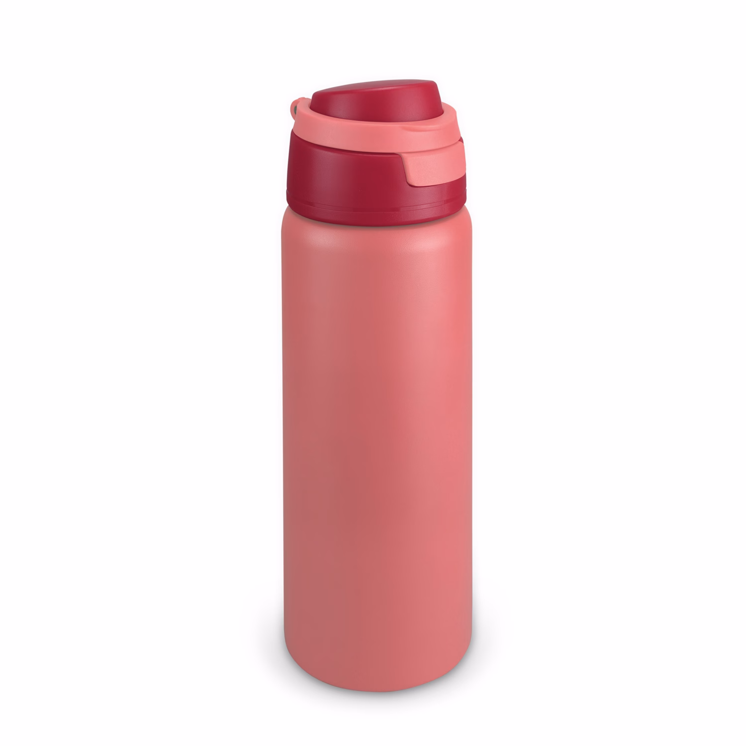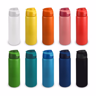 Stay hydrated in style with this vibrant 700ml drink bottle. Made from recycled stainless steel it features double wall vacuum insulation to keep drinks cold for longer. The flip top lid with secure push button release reveals a fast flowing chug spout for quick hydration, while the foldaway carry handle adds grab-and-go convenience. Finished with a durable matte powder coat and contrasting lid details and presented in a natural gift box, it's built for performance and personality.