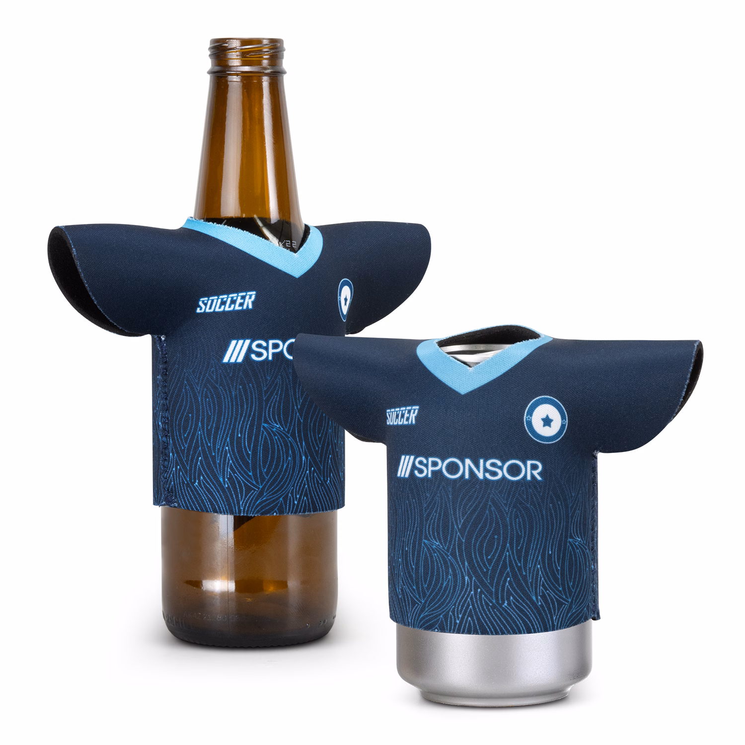 This fun stubby and can holder is made from 3mm neoprene. Easily customised to replicate your favourite sports team's jersey, it fits most stubby bottles and cans. It slips on easily and prevents cold, wet hands while keeping your drinks cool for longer. A production lead time of 25 working days applies to this product.