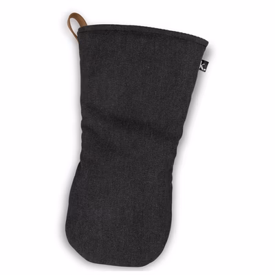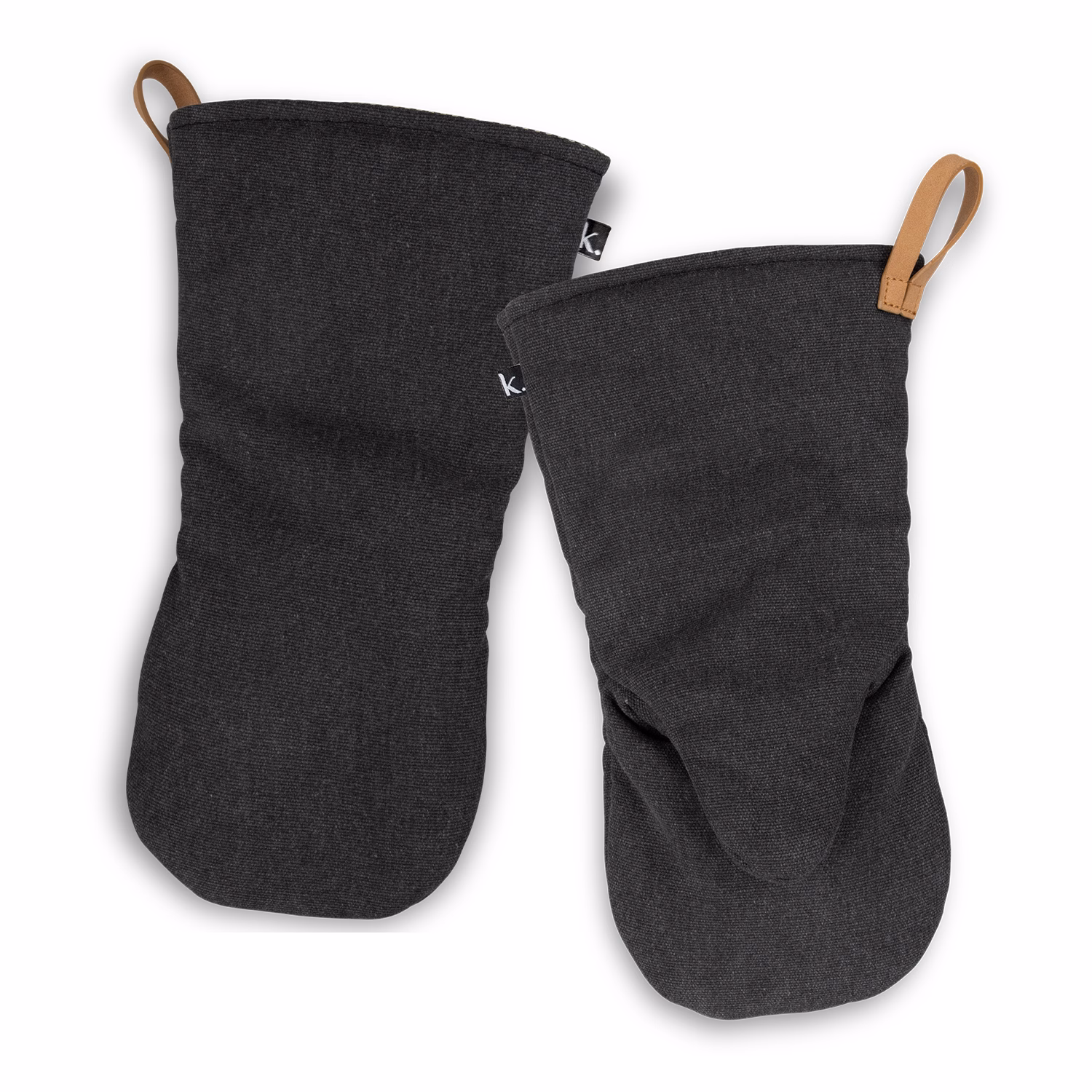Crafted for both style and function the Keepsake canvas oven mitt is made of 300gsm cotton canvas. With a washed black outer and chic black-and-white striped lining, they add a touch of refinement to your kitchen essentials. A convenient brown PU hanging loop makes for easy storage, while a small woven Keepsake label adds an understated finishing touch. Presented with a Keepsake branded hangtag.