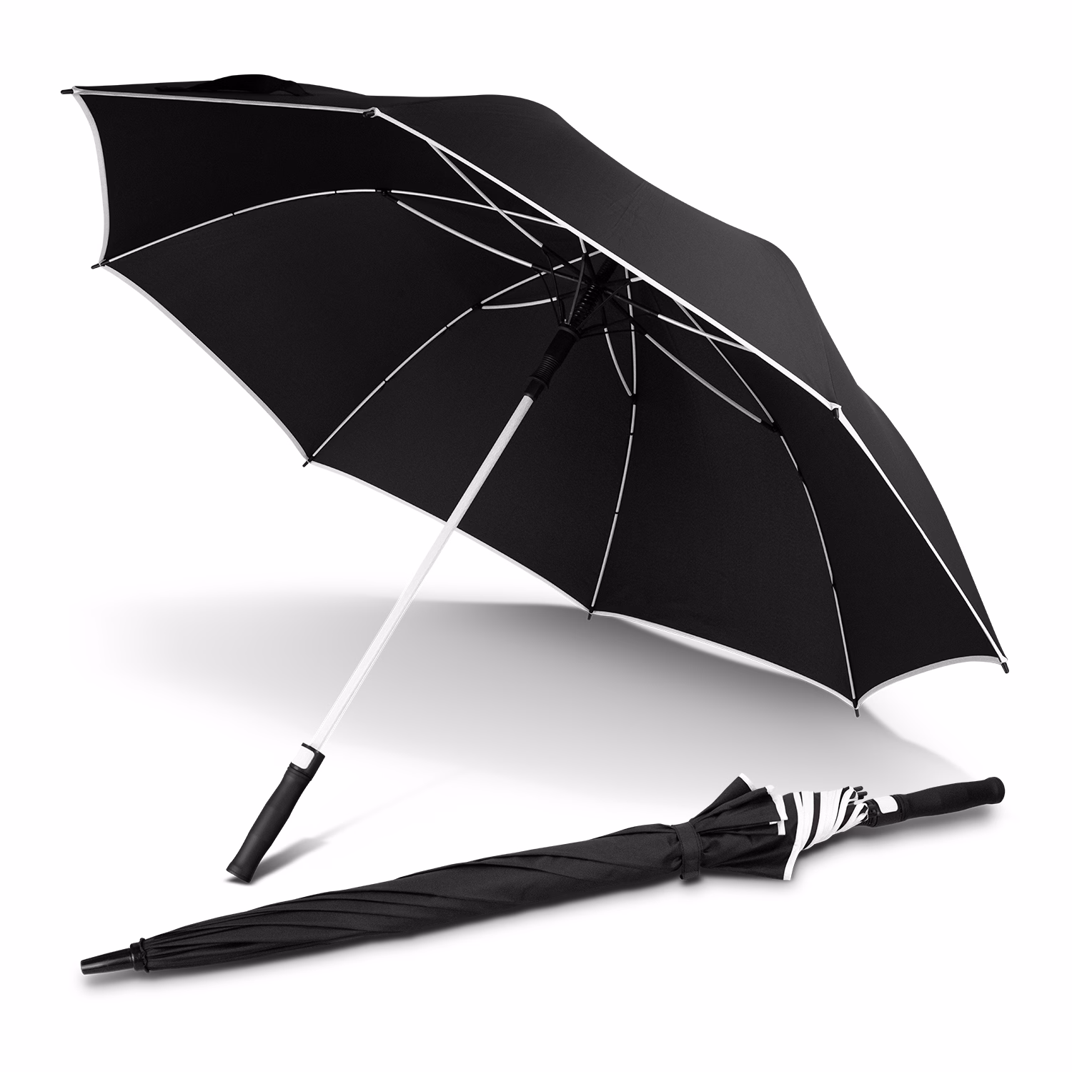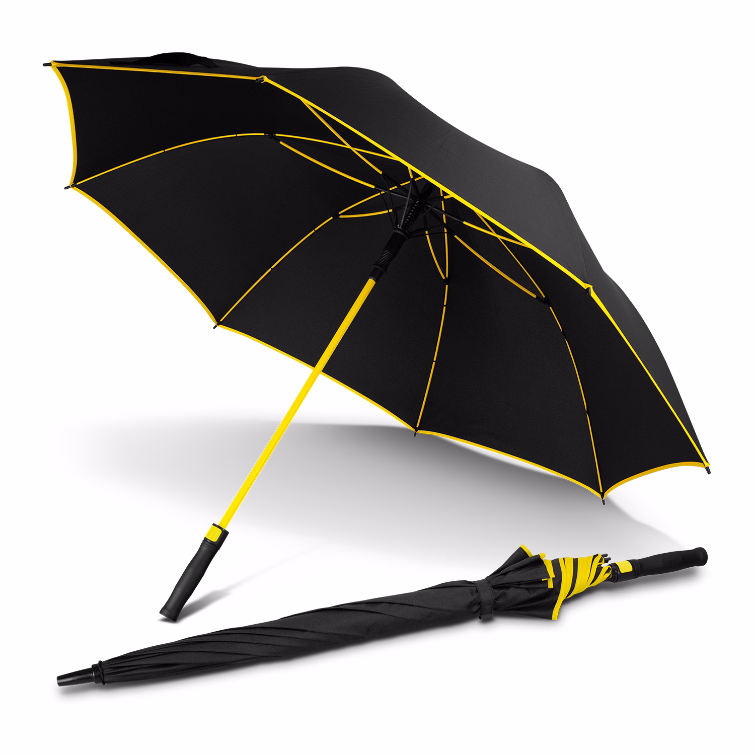 Stay dry in style with the Monsoon Umbrella, featuring a large 190T pongee canopy with a sleek colour edge. The durable fiberglass shaft and ribs, comfortable EVA foam handle, and convenient push-button opening combine practicality with elegance. Ideal for showcasing your logo while keeping you covered.