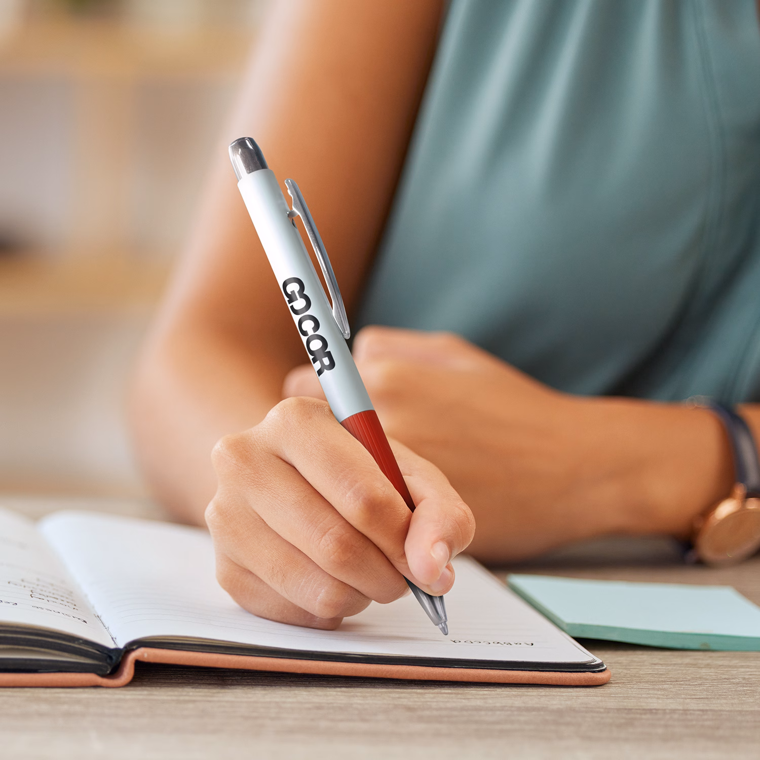 Sleek retractable ballpoint pen featuring a recycled aluminium barrel and a matte lacquered finish with chrome trim. Featuring a rubber-coated metal grip ensures comfort and a black refill with 800 metres of German manufactured Dokumental ink. Available with an optional presentation sleeve.