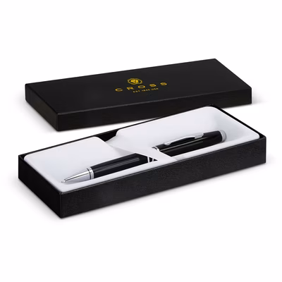 Since 1846, Cross has been redefining the art of writing by creating distinguished, expertly crafted writing tools. The Cross Coventry ballpoint pen blends timeless design with exceptional craftsmanship. Featuring the iconic Cross design, signature conical top, and cap-over-barrel design, this pen boasts a sleek gloss black lacquer finish with polished chrome appointments. The swivel-action propel/repel mechanism and specially formulated ink provide a smooth, flawless writing experience and a Lifetime Mechanical Warranty gives you peace of mind. The Cross name engraved on the pen clip adds a touch of distinction. Presented in a Cross branded gift box with a cardboard sleeve, this pen is the perfect gift for anyone who appreciates the art of fine writing. Additional colour options are available - please contact our customer service team for stock availability and pricing.