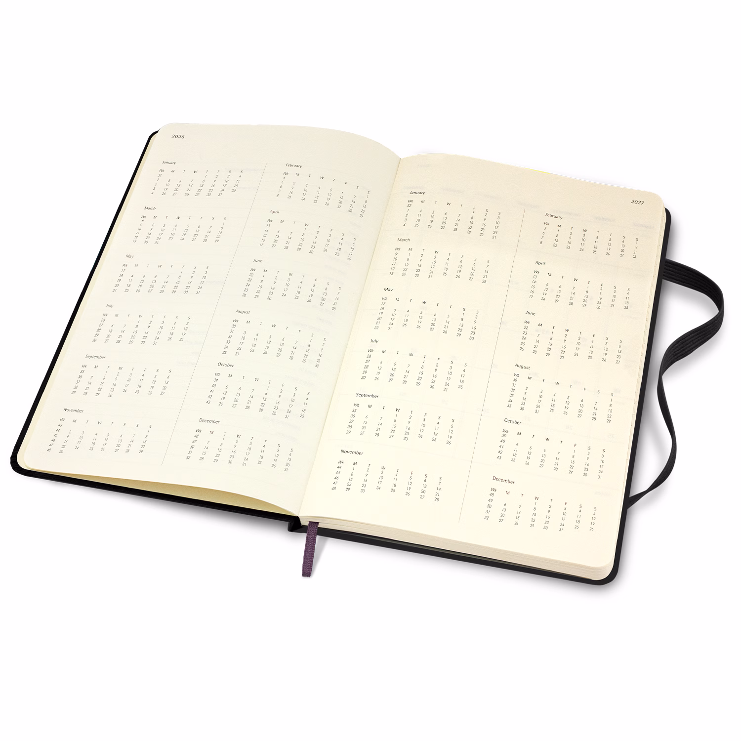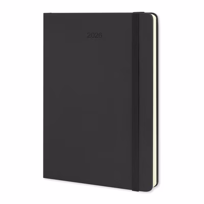 The Moleskine 2026 Weekly Planner is a classic hardcover A5 planner featuring ivory-coloured paper with rounded edges, a bookmark ribbon, and an elastic. Dated from January to December 2026, each two-page spread shows the days of the week on the left and a lined page for notes on the right. It features an expandable back pocket for storage and has the Moleskine logo subtly debossed on the back cover and printed on the inside front cover. An optional Moleskine Classic Tool Belt is also available. Note this product cannot be supplied without the Moleskine logo. Moleskine reserves the right to decline any custom project or artwork that does not align with its brand on a case-by-case basis. The paper of this Moleskine product is made of material from well-managed, certified forests and other controlled sources.