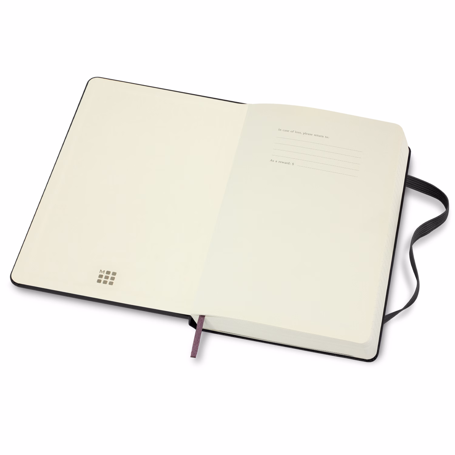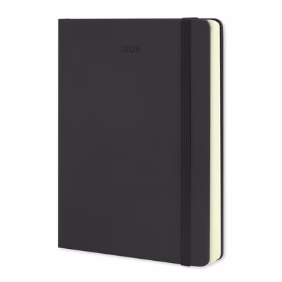 The Moleskine 2026 Weekly Planner is a classic hardcover A5 planner featuring ivory-coloured paper with rounded edges, a bookmark ribbon, and an elastic. Dated from January to December 2026, this elegant planner is formatted to show one day per page. It features an expandable back pocket and has the Moleskine logo subtly debossed on the back cover and printed on the inside front cover. An optional Moleskine Classic Tool Belt is also available. Note this product cannot be supplied without the Moleskine logo. Moleskine reserves the right to decline any custom project or artwork that does not align with its brand on a case-by-case basis. The paper of this Moleskine product is made of material from well-managed, certified forests and other controlled sources.
