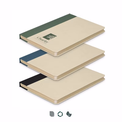 A practical and elegant medium-sized (approximately A5) hardcover notebook made with 80% sugarcane waste. It includes 80 leaves (160 pages) of smooth 90gsm natural lined paper, making it ideal for everyday use. The hard cover is enhanced with an rPET trim in a striking contrasting colour. Perfect for professionals, students, and creatives seeking quality and thoughtful design.