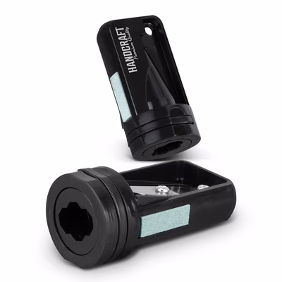 Precision sharpener specifically designed for carpenter's pencils. Features a narrow sharpening angle that produces a broader, more durable point to minimise lead breakage. An integrated emery board allows for a fine point filing.